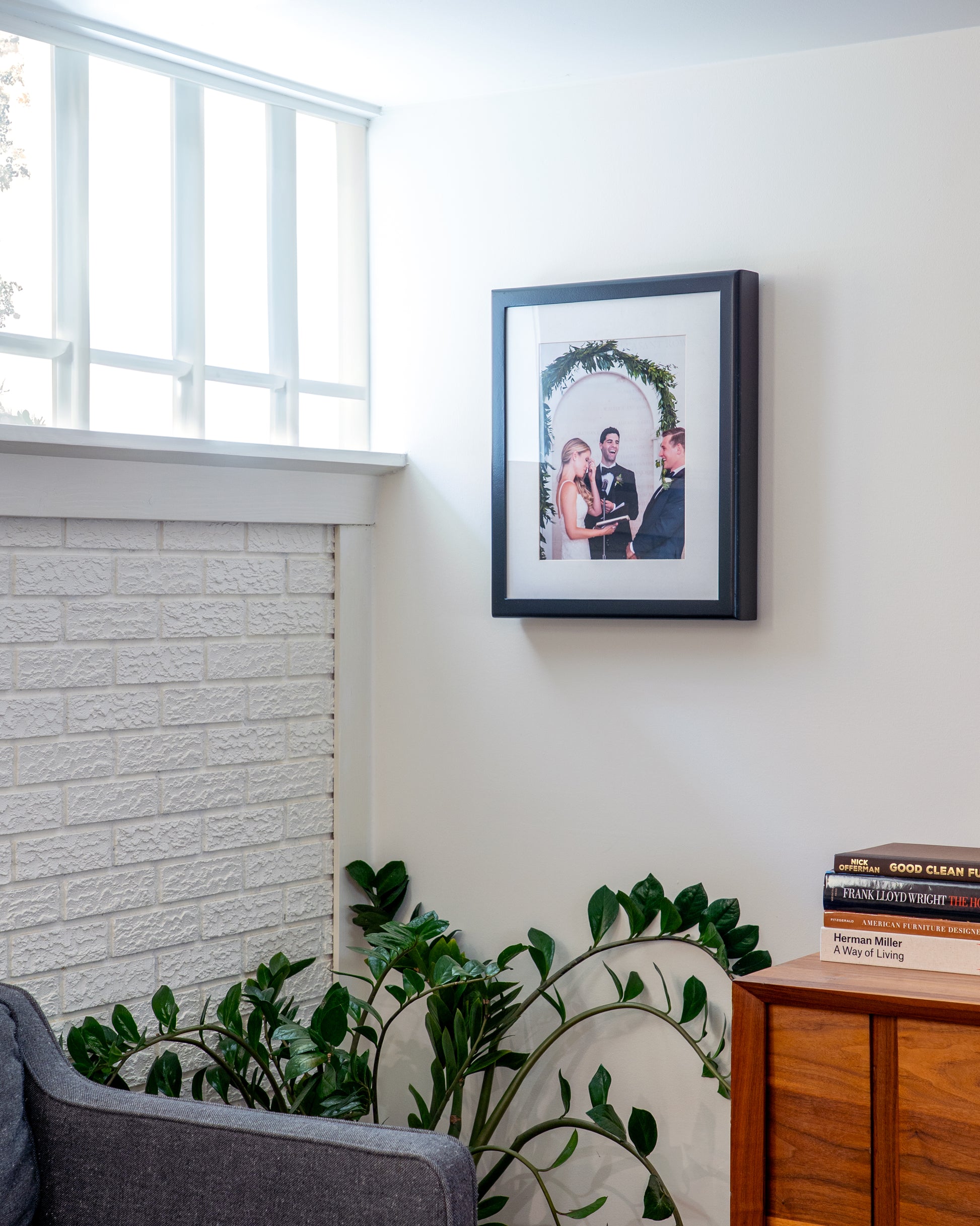 By default, Stash ships with a mat but without art, so you can choose what to display. Inserting your own 11” × 14” print is easy, and you can swap it any time. If you'd prefer your frame ready to hang upon arrival, you can add an original original Stash Frames print for $15, or a personalized art package where we print, mat, and install your chosen image before shipping (email us to inquire).